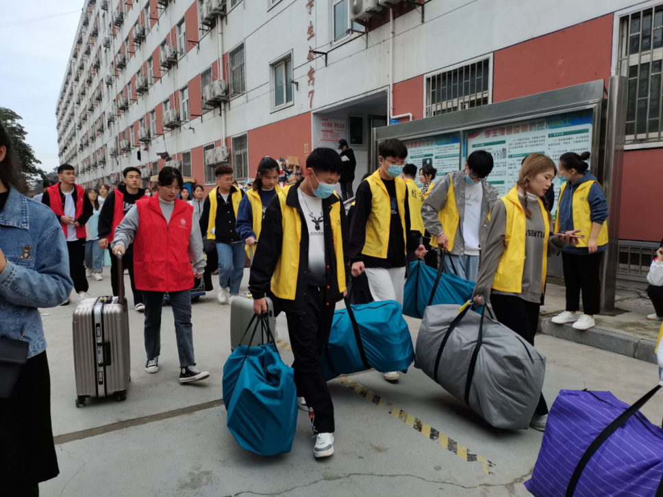在党团志愿服务队的协助下,2020级的同学们将全部行李打包装车完毕、清理好宿舍卫生。随后,党员老师与2020级学生随车前往开封校区。抵达开封校区后,在制药工程学院及建筑工程学院志愿者们的协助下,大家井然有序地将行李卸车,搬运至新的宿舍。至此,2020级会计、财管专业全体学生安全入住宿舍,此次宿舍搬迁工作圆满完成。