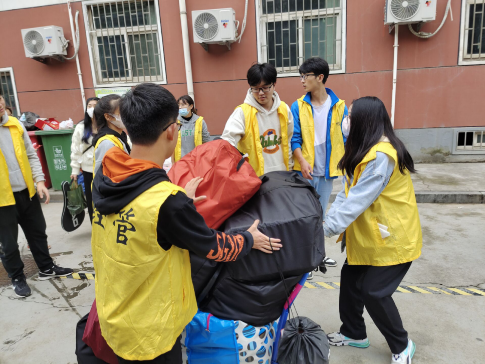 本次搬迁任务时间紧、任务重,但这丝毫没有影响到师生志愿者的热情和干劲。党员师生们前往所负责的学生宿舍,以饱满的热情投入到了紧张有序的搬迁工作中。期间,师生的身影在宿舍楼和货车间来回穿梭,帮助同学将打包好的行李搬运至指定存放点。他们以实际行动诠释了党的无私奉献的服务精神,在实践中回归服务群众的初心,充分体现教师党员、团员青年的先锋模范带头作用,展现出良好的精神风貌,助力搬迁工作的顺利开展。衣服虽然都沾满了尘土,但大家脸上却洋溢着笑容,因为他们感受到了志愿服务带来的快乐和充实,也感受到胸前党员党徽带来的无穷力量。
