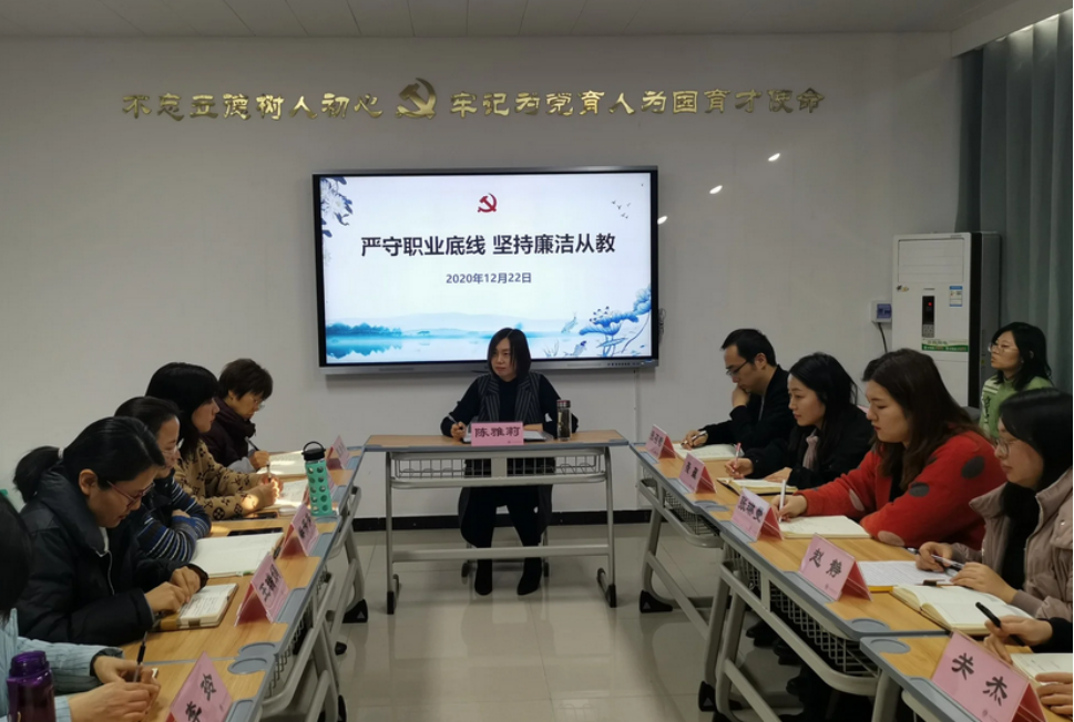 为增强全体教师的廉洁意识,提高廉洁从教的自觉性,夯实学校廉洁从教的基石,进一步营造风清气正的育人环境,不断把党风廉政建设工作引向深入,2020年12月22日下午,学校纪委书记陈雅莉为Beat365正版唯一官网必一全体教师上了一堂题为《严守职业底线坚持廉洁从教》的专题廉政党课。