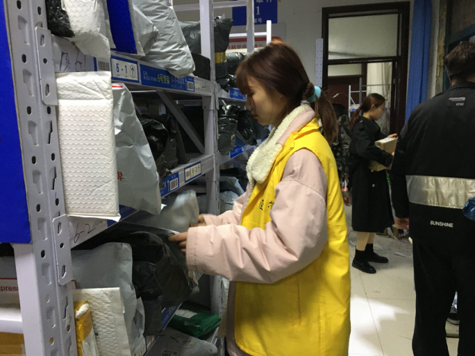 在提前与菜鸟驿站负责人协商整理收取快递时间后,志愿者轮流在课余时间去菜鸟驿站帮助菜鸟驿站的工作人员整理快递。在活动过程中,志愿者秉持着敬业的态度,与工作人员积极沟通,听从他们的安排,认真完成任务。