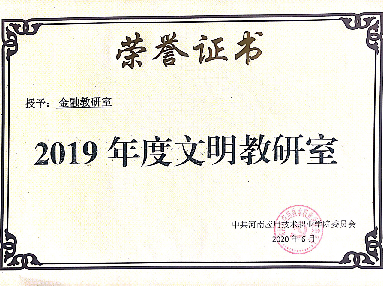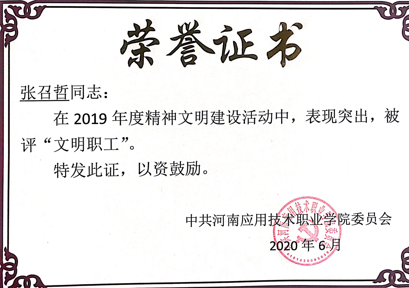 根据《Beat365正版唯一官网必一关于开展2019 年度“文明处室(学院)”、“文明教研室”、“文明职工”、“优秀志愿者”、“文明食堂”评选活动的通知 》应职院文明办[2020]2号文件精神,我院金融教研室被评为2019年度“文明教研室”荣誉称号。张召哲、凌端平同志荣获“文明职工”荣誉称号;柴芳芳、聂蕴同志荣获“优秀志愿者”荣誉称号。