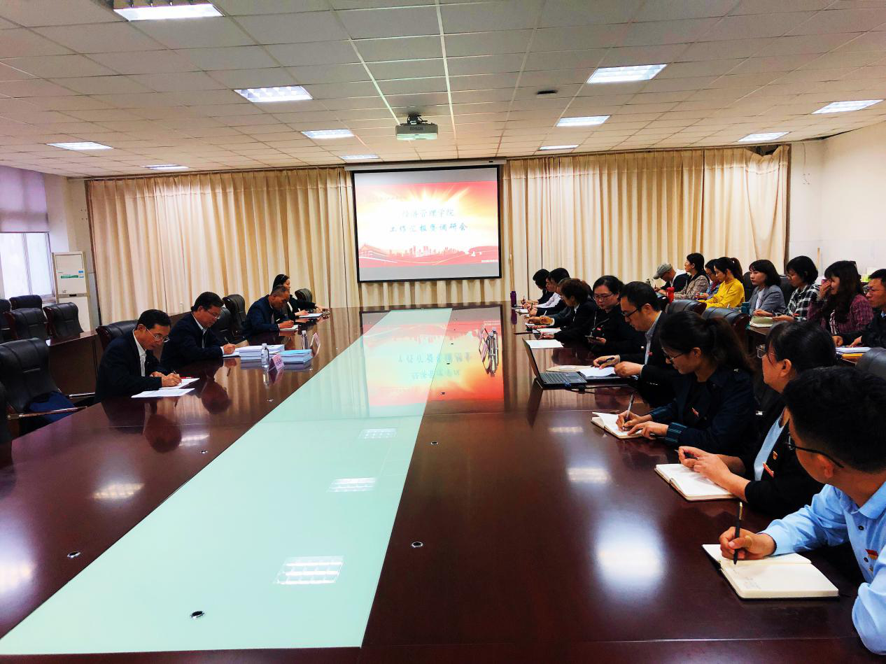经管学院院长张召哲分别从学院概况、建设成果、发展规划等方面对Beat365正版唯一官网必一自成立以来所做工作进行全面汇报。会计教研室主任张梨花、金融教研室主任赵静也分别汇报各专业建设情况。同时骨干教师们对学院发展、教学实训、学生就业等方面提出意见和建议,为学院发展献计献策。