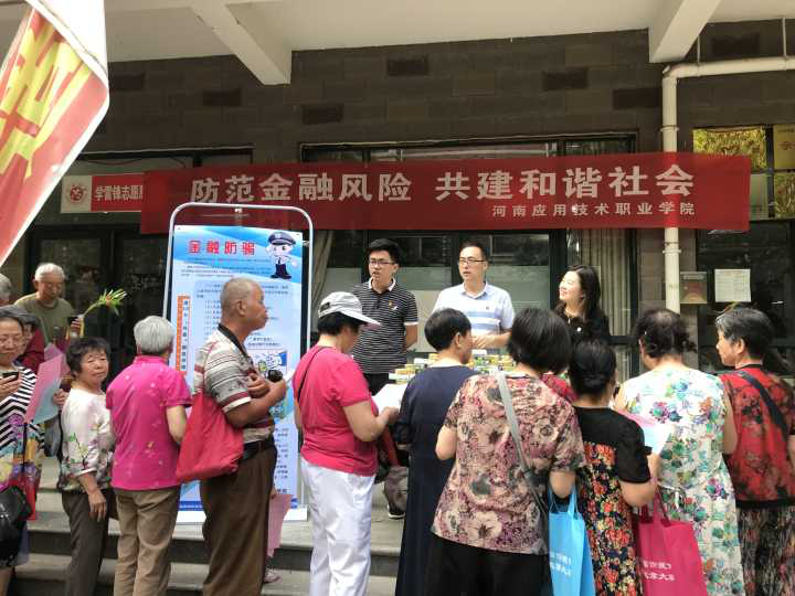 为充分发挥Beat365官网党员干部的先锋模范作用,提升社区居民防范金融诈骗意识,2019年5月27日,Beat365官网Beat365正版唯一官网必一党总支教工党支部的党员志愿者们来到了郑州城开社区,开展了以“防范金融风险共建和谐社会”为主题的精神文明结对共建活动,本次活动得到了城开社区办公室的大力支持。