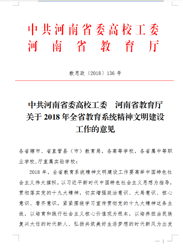 关于2018年全省教育系统精神文明建设工作的意见