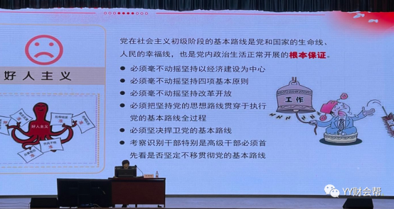 课程开篇,袁清香书记通过习近平总书记关于全面从严治党的重要论述切入主题,并从新理念、新要求、新举措三个方面对严肃党内政治生活的意义进行深入解读。其次,袁清香书记重点分析了《关于新形势下党内政治生活的若干准则》,从党内政治生活的历史经验,新时代旗帜鲜明讲政治的六大着力点、提高政治觉悟和政治能力的路径、“四个服从”的内涵等方面为党员发展对象上了一堂生动的党课,强调作为党员发展对象,要不断提高政治觉悟和政治能力、严守政治纪律和政治规矩这条“生命线”,坚决做到“四个服从”、增强“四个意识”、坚定“四个自信”、做到“两个维护”,永葆党的先进性和纯洁性。