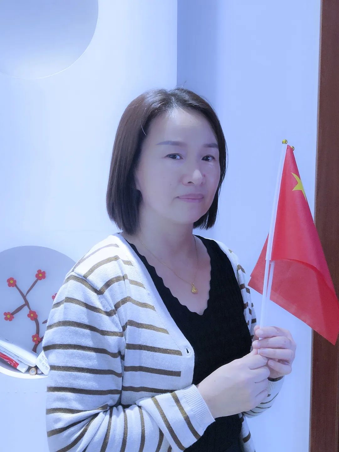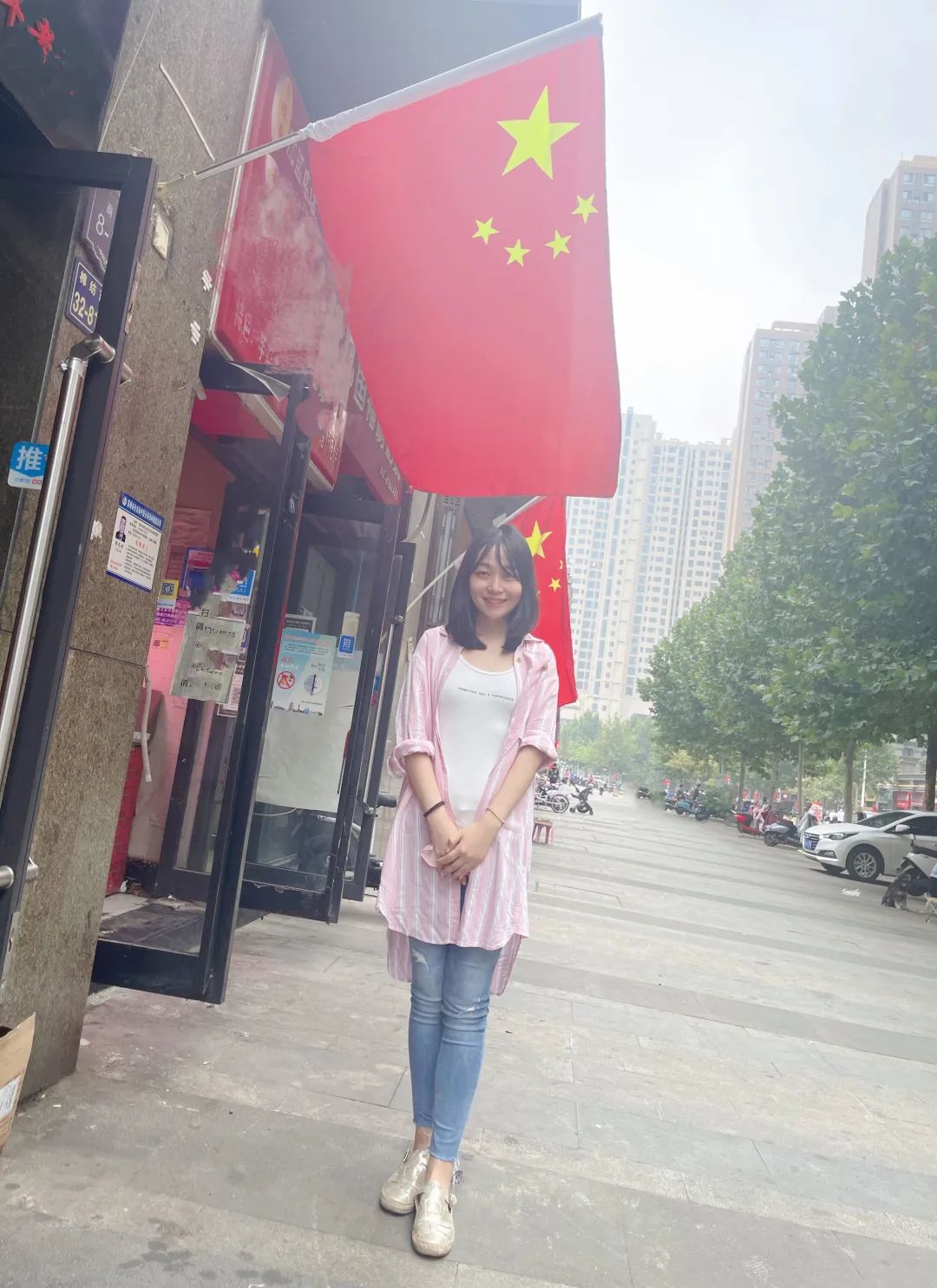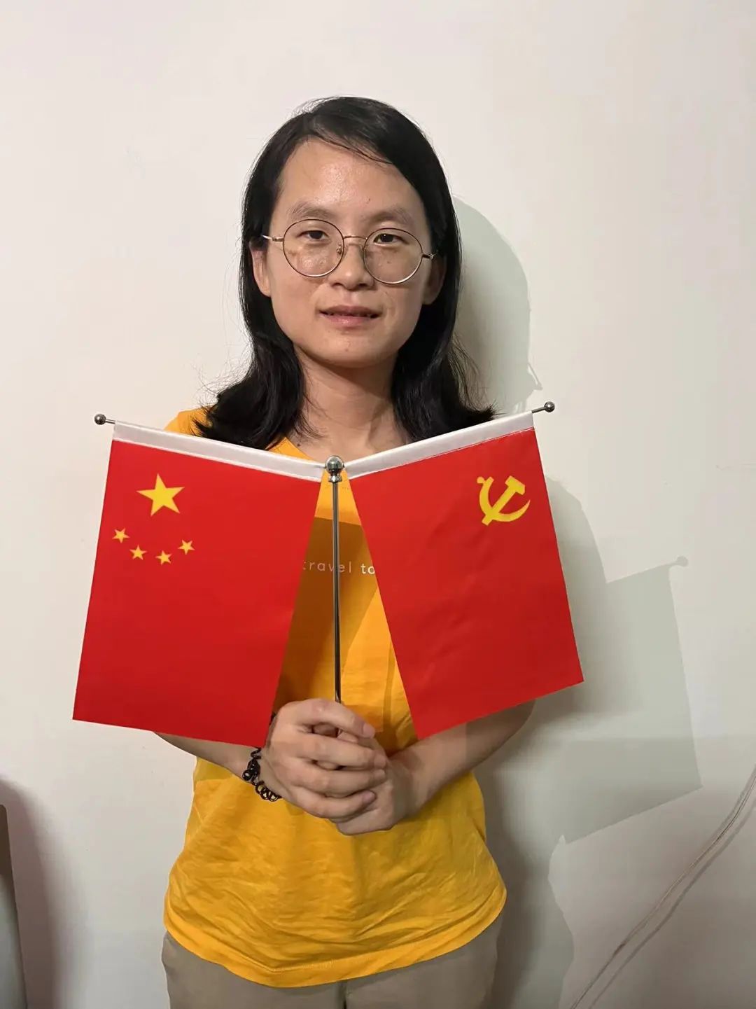 与国旗合影