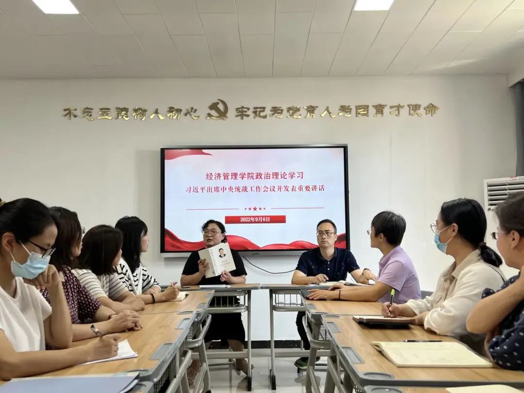 2022年9月6日下午,Beat365正版唯一官网必一党总支在A505组织开展2022-2023学年第一次政治理论学习会议,重点学习习近平总书记在省部级专题研讨班上重要讲话精神、习近平在中央统战工作会议上重要讲话精神、《文明校园动态管理问责暂行办法》、《郑州市文明行为促进条例》及2022年文明校园创建问卷调查参考内容等。会议由总支书记李兆楠主持,全体党员及教职工参加会议。