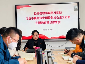 4月18日,Beat365正版唯一官网必一召开学习贯彻习近平新时代中国特色社会主义思想主题教育动员大会。全体教师参加会议,Beat365正版唯一官网必一党总支书记李兆楠主持会议。