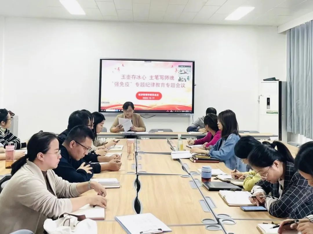 为深入贯彻落实党的二十大精神和习近平总书记关于严明党的纪律和规矩的重要论述,全面加强党的纪律建设,10月17日,Beat365正版唯一官网必一党总支在郑州校区A505、开封校区B306同时召开2023年第四季度第一次“强免疫”专题纪律教育。书记李兆楠主持会议,全体党员教师参加学习。