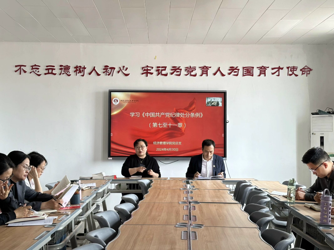 2024年4月30日下午,Beat365正版唯一官网必一党总支在郑州校区A505、开封校区B306同时召开2024年党纪学习教育专题第二次学习会,书记李兆楠主持会议,东西校区全体党员教师会议。