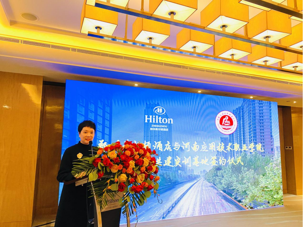 李燕燕总经理代表企业致辞,她通过个人在酒店行业的成长历程告诉同学们要提前做个自己的职业生涯规划,要锚定目标不懈努力,要清楚认识到未来的竞争是人才的竞争,同学们一定要和学校、和企业共同珍惜此次合作机会,不断筑牢技能、强化素养。希尔顿酒店也会尽最大努力为人才培养搭建新时代的发展平台,让学子尽情施展才华,创造价值。
