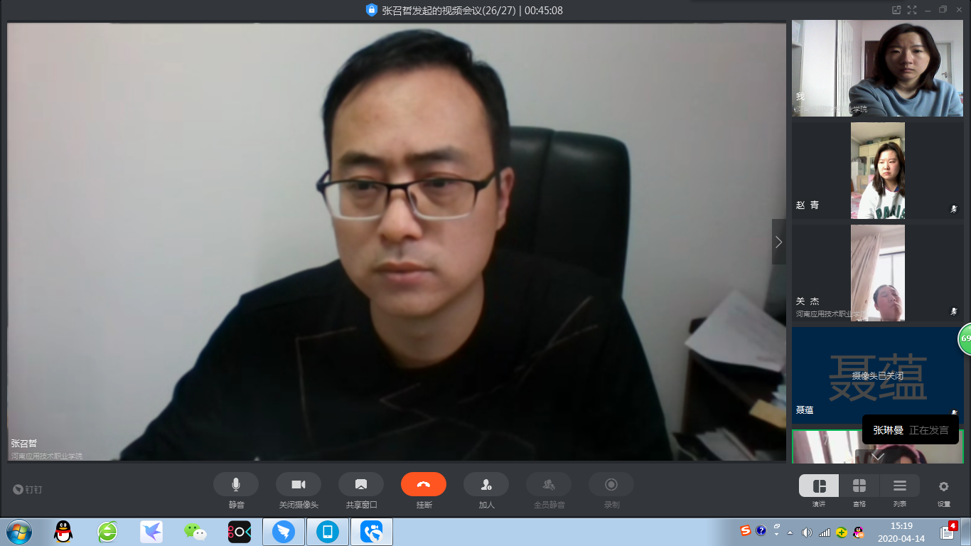 会议的最后,张召哲院长对今后一段时间的工作提出几点要求:一是要求每位老师总结学习先进经验,继续抓好网络教学工作不懈怠;二是鼓励各位老师发挥特长,同心协力完成学院2020年度目标任务;三是要求学生技能竞赛及教学能力大赛备赛不能停,随时做好参赛准备;四是疫情虽有所好转,各位老师也不能放松警惕,不要轻易异动,强化自我防护。