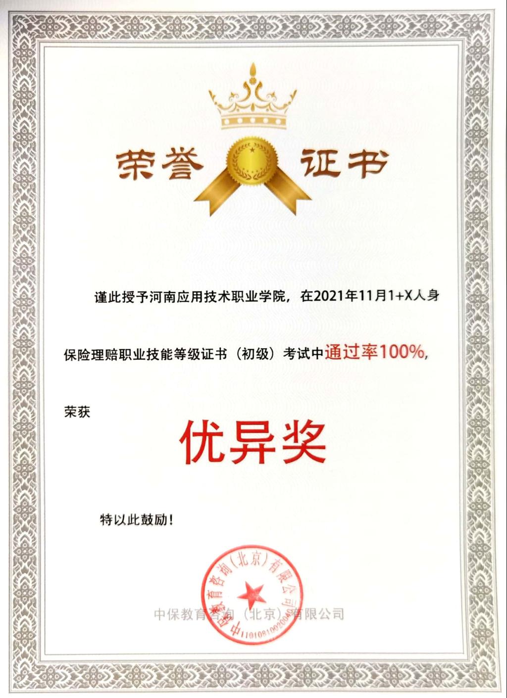 为贯彻《国家职业教育改革实施方案》精神,落实教育部《关于在院校实施“学历证书+若干职业技能等级证书”制度试点方案》的文件要求,Beat365正版唯一官网必一积极开展“1+X”证书制度试点工作,11月13日,由中保慧杰教育咨询(北京)有限公司组织的2021年全国“1+X”人身保险理赔职业技能(初级)考试在Beat365官网举行,获证率达到100%,全国共24所高校参加“1+X”人身保险理赔职业技能(初级)考试,通过率100%只有5所,Beat365官网是其中之一。
