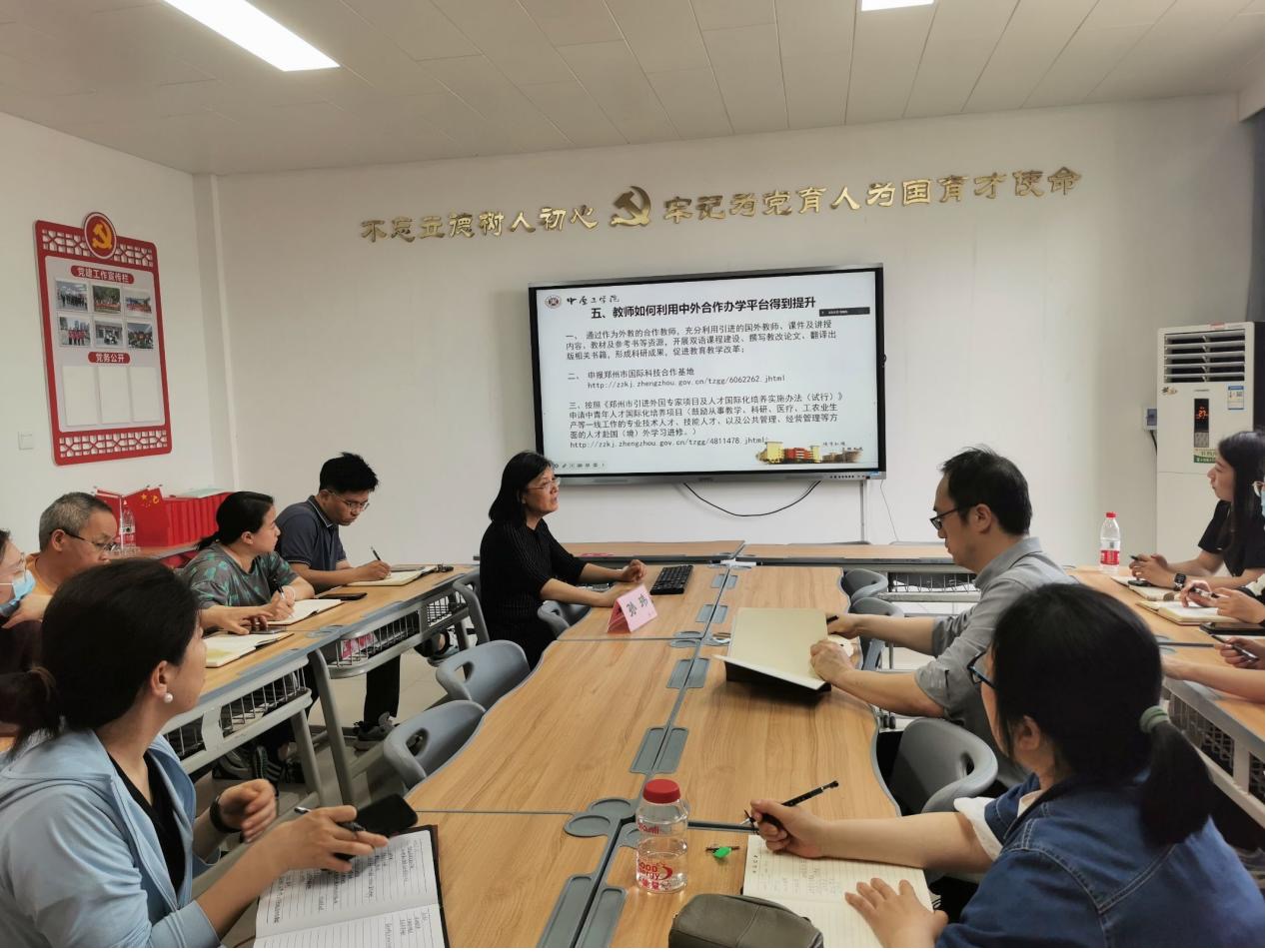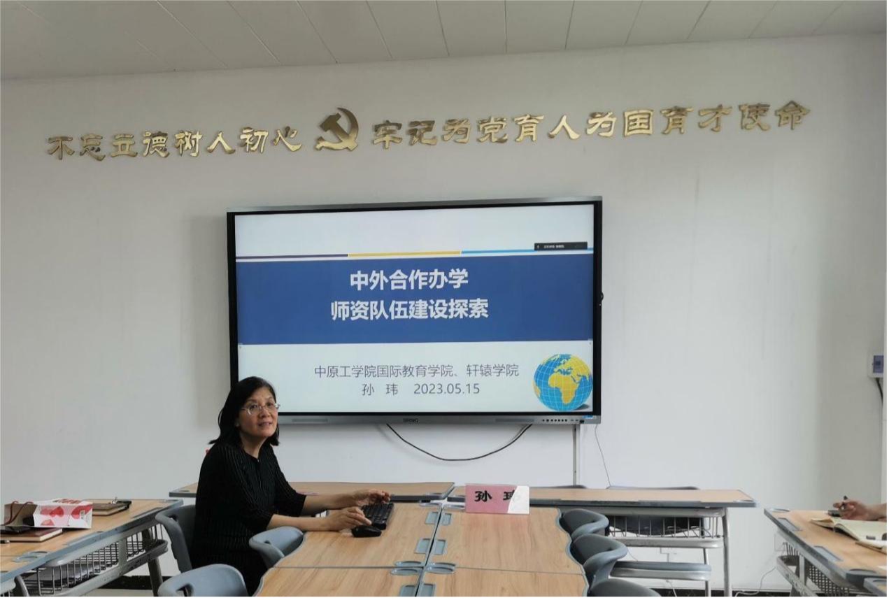 5月15日,中原工学院国际教育学院院长孙玮教授应邀来到Beat365官网,围绕国际合作办学管理模式、专业发展及师资团队建设做专题报告。Beat365正版唯一官网必一全体专兼职教师参加了本次交流活动。