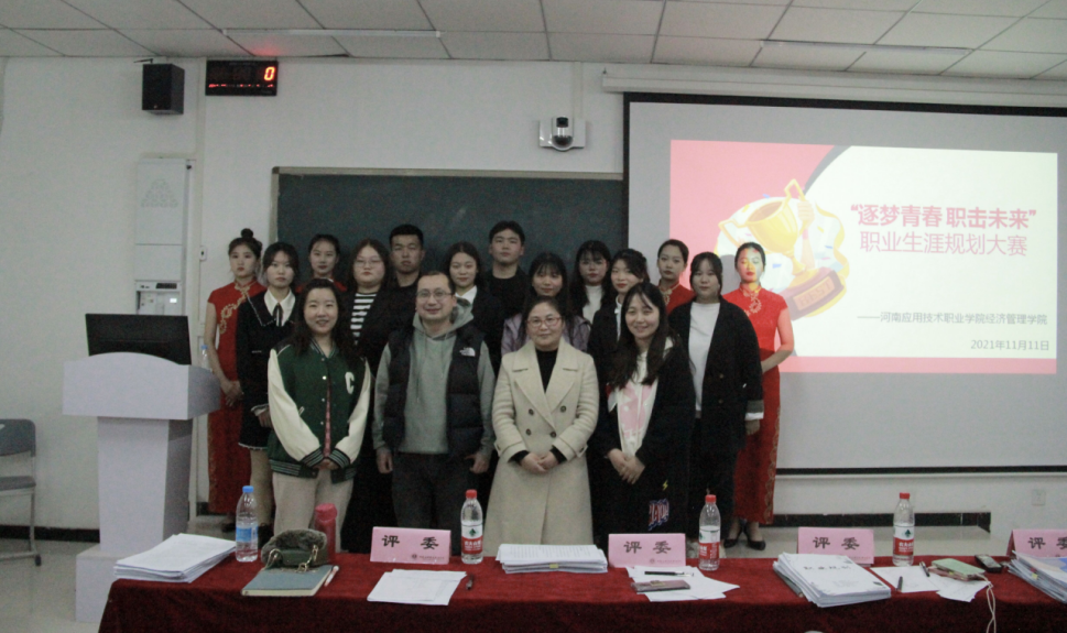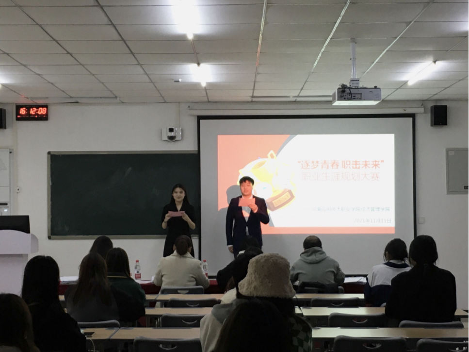 为贯彻落实党中央、国务院“稳就业”、“保就业”决策部署,响应教育部要求的进一步完善高校毕业生就业支持体系,引导学生树立正确的成才观、就业观和价值观,科学规划职业生涯,进一步明晰职业发展目标。2021年11月11日下午,Beat365正版唯一官网必一在教学楼102举办“逐梦青春 ‘职’击未来”职业生涯规划大赛。就业指导中心主任张万伦老师、招生就业处姬彦红老师、Beat365正版唯一官网必一办公室主任张晓凤老师、团总支书记聂蕴老师担任评委。
