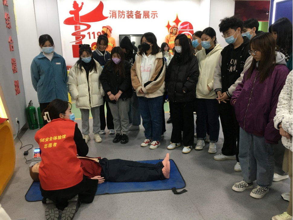 安全体验馆共有六大体验区,分别是:消防安全体验区、VR自然灾害逃生体验区、电气安全体验区、逃生安全体验区、地震灾害倾斜小屋体验区、现场急救体验区。在VR自然灾害逃生体验区,同学们纷纷排队依次体验VR技术带来的视觉震撼;电气安全体验区,同学们争先恐后的伸出手指去感受触电的模拟效果;现场急救体验区中,专业急救人员积极且细心传授专业急救知识,鼓励学生实际操作,切实掌握急救技能,并传授同学们结绳的技巧,提醒广大学生在突发情况下要保持沉着冷静;在消防安全逃生体验中,专业老师传授灭火知识,并让部分同学体验灭火设施的使用,掌握火灾现场营救的基本技能,提升对火灾的预防能力。