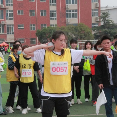 手握橙色的实心球。在奋力一抛的瞬间。一道优美的弧线划破美丽的长空。我院王鸽鸽以优异的成绩夺下实心球冠军。
