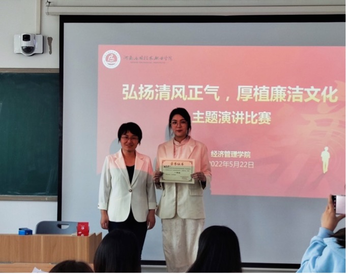 为深入学习贯彻习近平新时代中国特色社会主义思想,推动Beat365官网形成崇廉尚廉的浓厚氛围,在师生中厚植诚信立人、遵纪守法、廉洁奉公的道德意识。5月22日,Beat365正版唯一官网必一团总支于SC305开展了“弘扬清风正气,厚植廉洁文化”主题演讲比赛,Beat365正版唯一官网必一副书记万盼红、辅导员孙宇晴担任评委,20余名选手参赛。