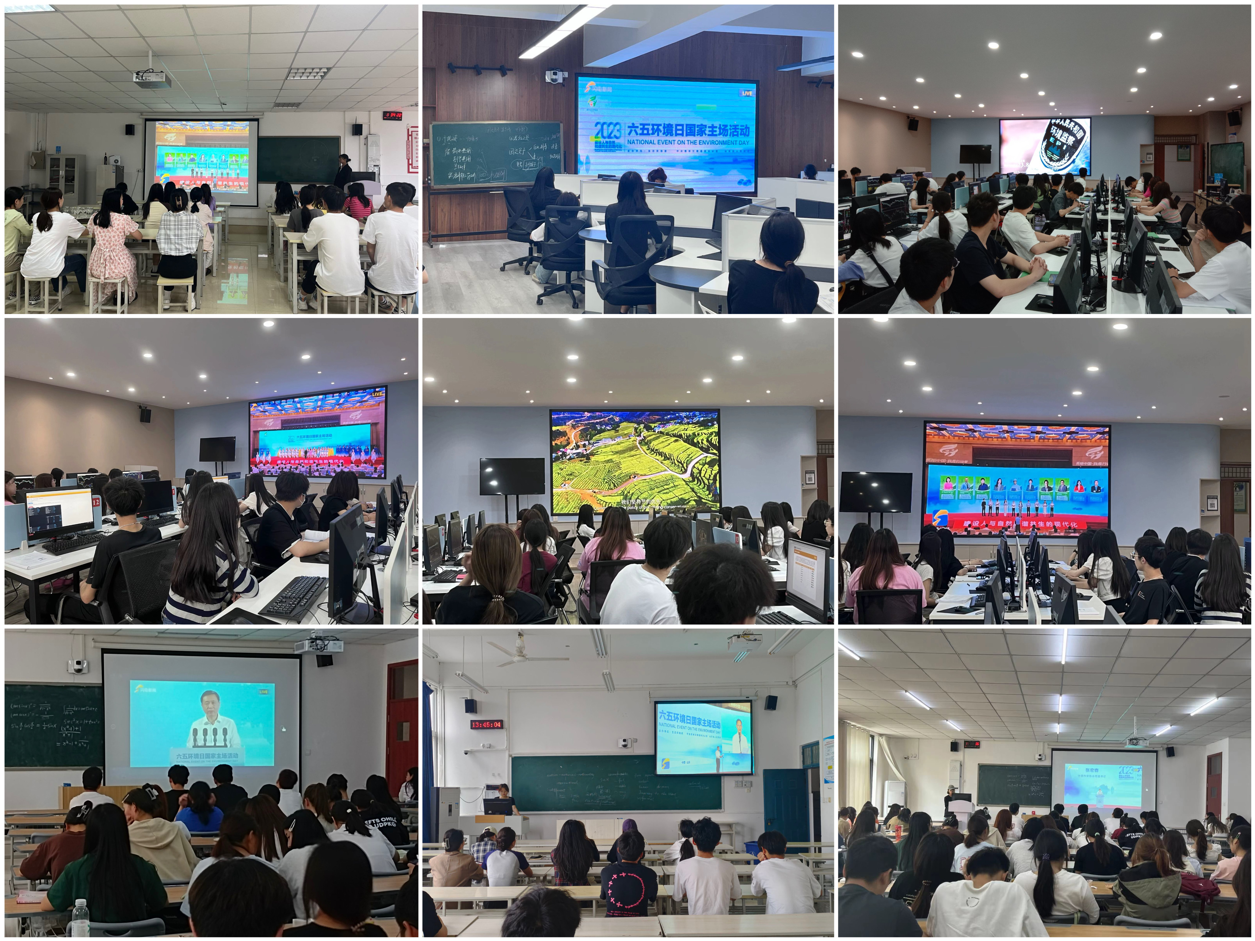 活动分为两个阶段,第一阶段是理论学习。6月5日,Beat365官网师生以团支部为单位,共同观看了“‘六五’世界环境日国家主场活动”直播,了解2023年度“美丽中国,我是行动者”提升公民生态文明意识行动计划先进典型故事,引导广大青年团员把尊重自然、顺应自然、保护自然的生态文明理念入脑入心。