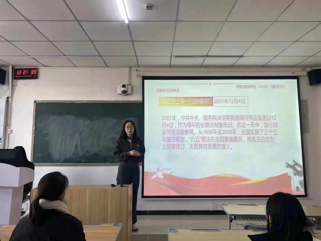 在“宪法宣传周”期间,各班团支书开展“学宪法 讲宪法”主题团课。宪法是国家的根本大法,学宪法讲宪法是大学生的必修课。通过讲解宪法的地位、作用、修订、更新的过程,强调宪法在生活中的重要作用,宣传宪法精神和习近平法治思想,号召大家主动学习宪法、自觉捍卫宪法、弘扬宪法精神,为社会主义和谐社会建设做出应有贡献。