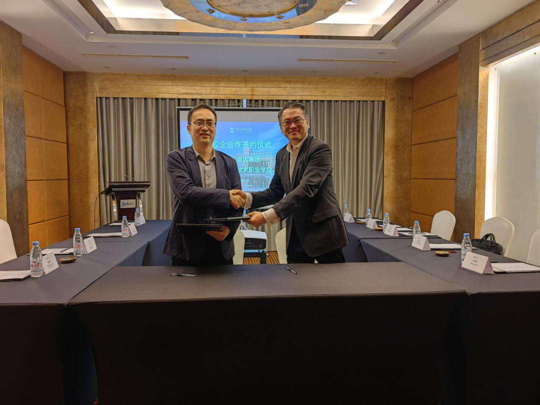 随后,校企双方开展座谈交流。张召哲就学院办学理念、师资力量、专业特色、人才培养等进行多维度介绍,希望通过访企拓岗,了解企业需求,打破信息壁垒,进一步推动校企合作、产教融合,为企业输送高质素对口人才。丽笙酒店集团运营总监彭宥翔详细介绍了企业运营、企业文化、人才需求、年度招聘、未来发展等,希望通过校企合作实现互利共赢。最后,校企双方就人才共育、企业奖学金、实习就业等议题进行深入交流并签署校企合作协议。