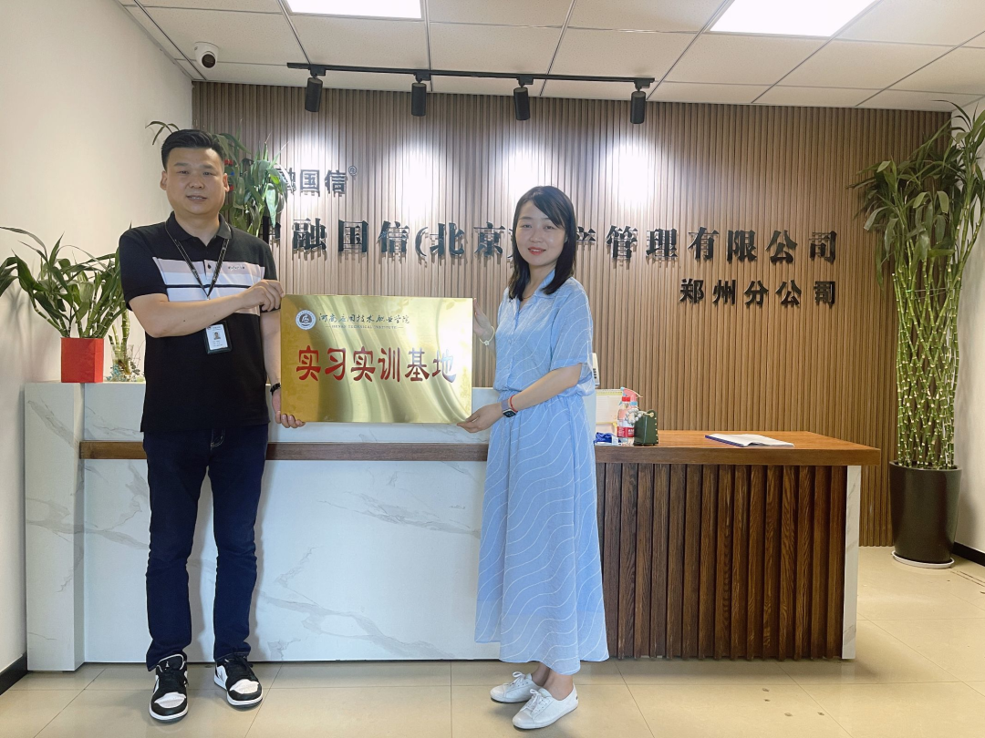 在双方座谈会中,聂蕴向企业介绍了学院专业建设、师资队伍和人才培养等情况,希望校企双方能够共建人才培养实习基地,为学院教师和学生实习就业提供更多的岗位和平台。公司负责人曲经理和徐经理分别介绍了公司发展规模与人才需求状况、员工培训和职业发展等公司人才培养机制,希望学校能源源不断为企业输送人才,开启校企合作新篇章。座谈结束后,校企双方签订了共建高水平专业化产教融合实训基地协议书,共同为校企实习实训基地揭牌。最后,聂蕴一行参观了中融国信(北京)资产管理有限公司工作环境。
