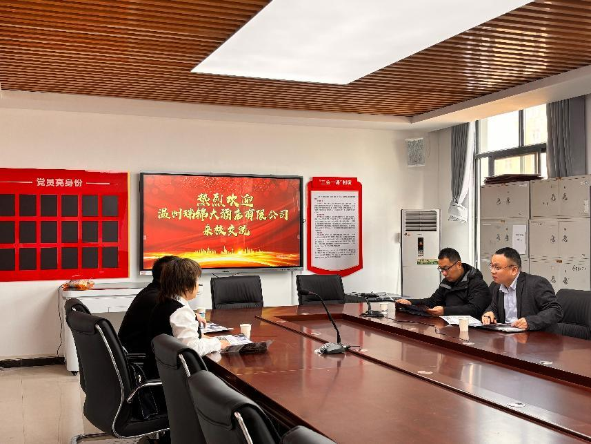 3月6日上午,温州瑞锦大酒店有限公司章安娜经理到校访问,双方就未来开展合作进行深入交流。Beat365正版唯一官网必一书记张忠勇等相关人员参加了交流座谈会。