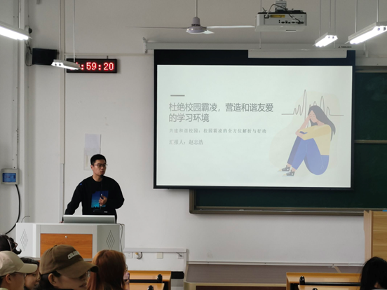 通过本次主题班会,进一步教会青年学生如何与人相处、与自己相处,树立与人为善的价值观念,坚决向校园欺凌说“不”,共同营造一个平安、和谐、稳定的校园生活学习环境