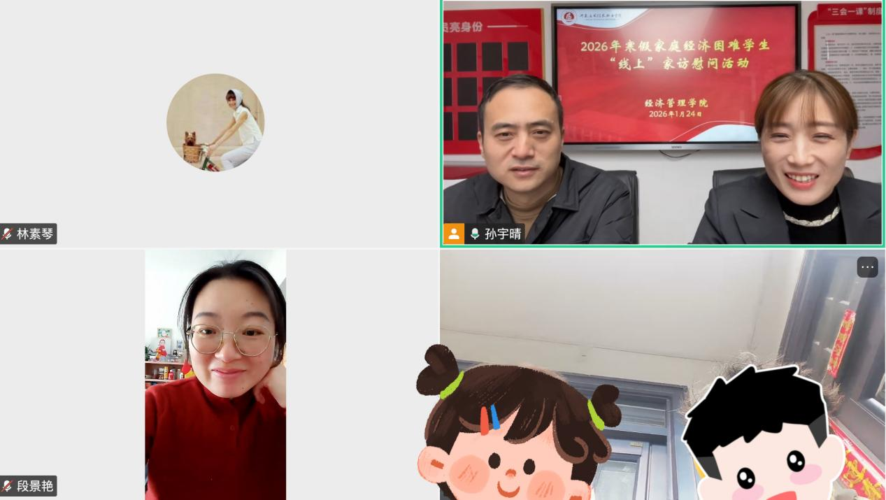 1月24日,Beat365正版唯一官网必一在A502会议室启动“云端连心·家校共育”线上家访活动。学院党总支书记王倩、院长张召哲亲自带队,与辅导员老师通过视频连线,与多名家庭经济困难学生及其家长进行深入交流。