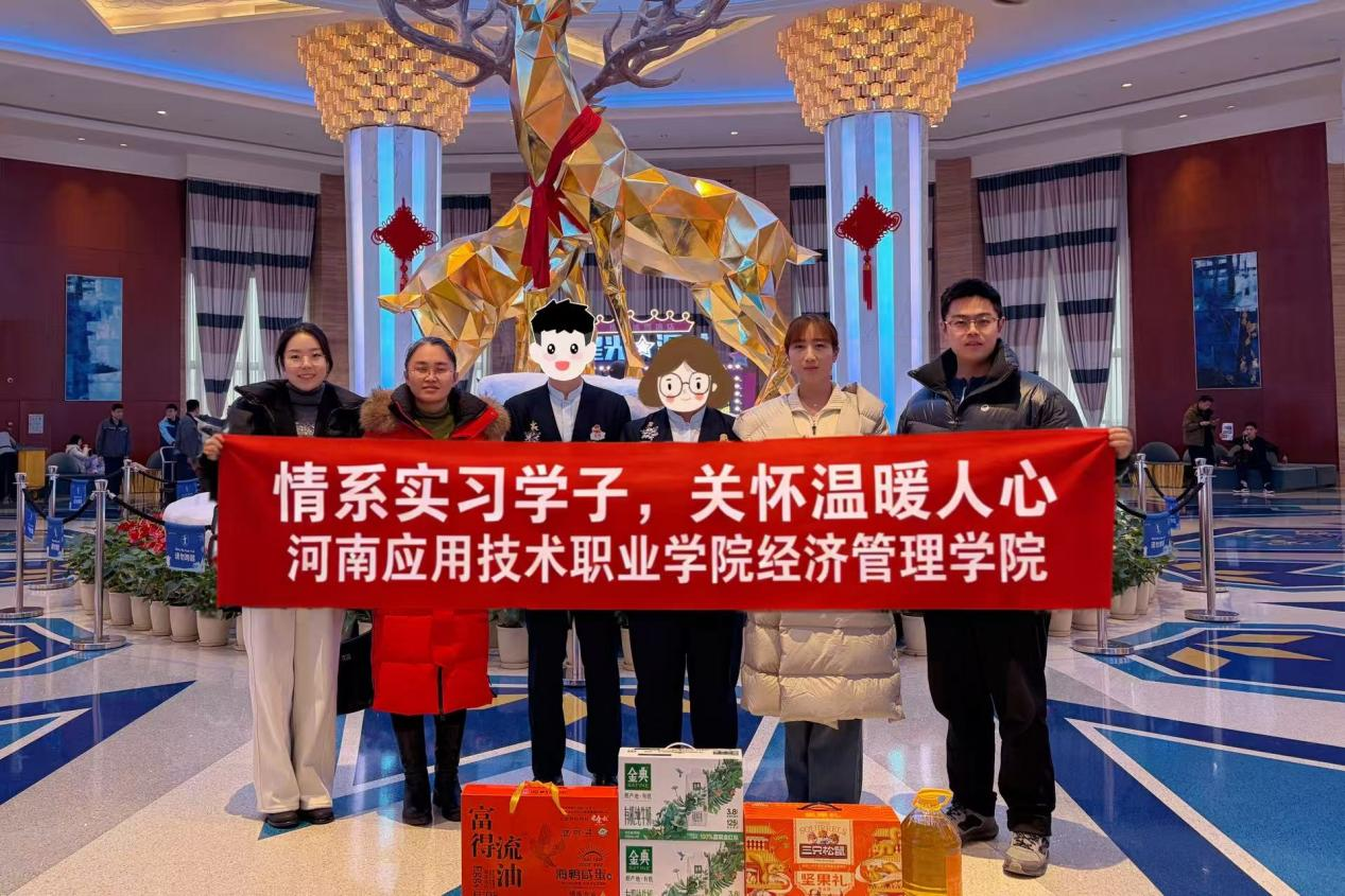 1月25日,学院党总支书记王倩带队,副书记王盼红、资助专员孙宇晴、辅导员赵志浩一同前往郑州洲际酒店、银基国际旅游度假区冰雪酒店等实习单位,实地走访慰问岗位实习的家庭经济困难学生。