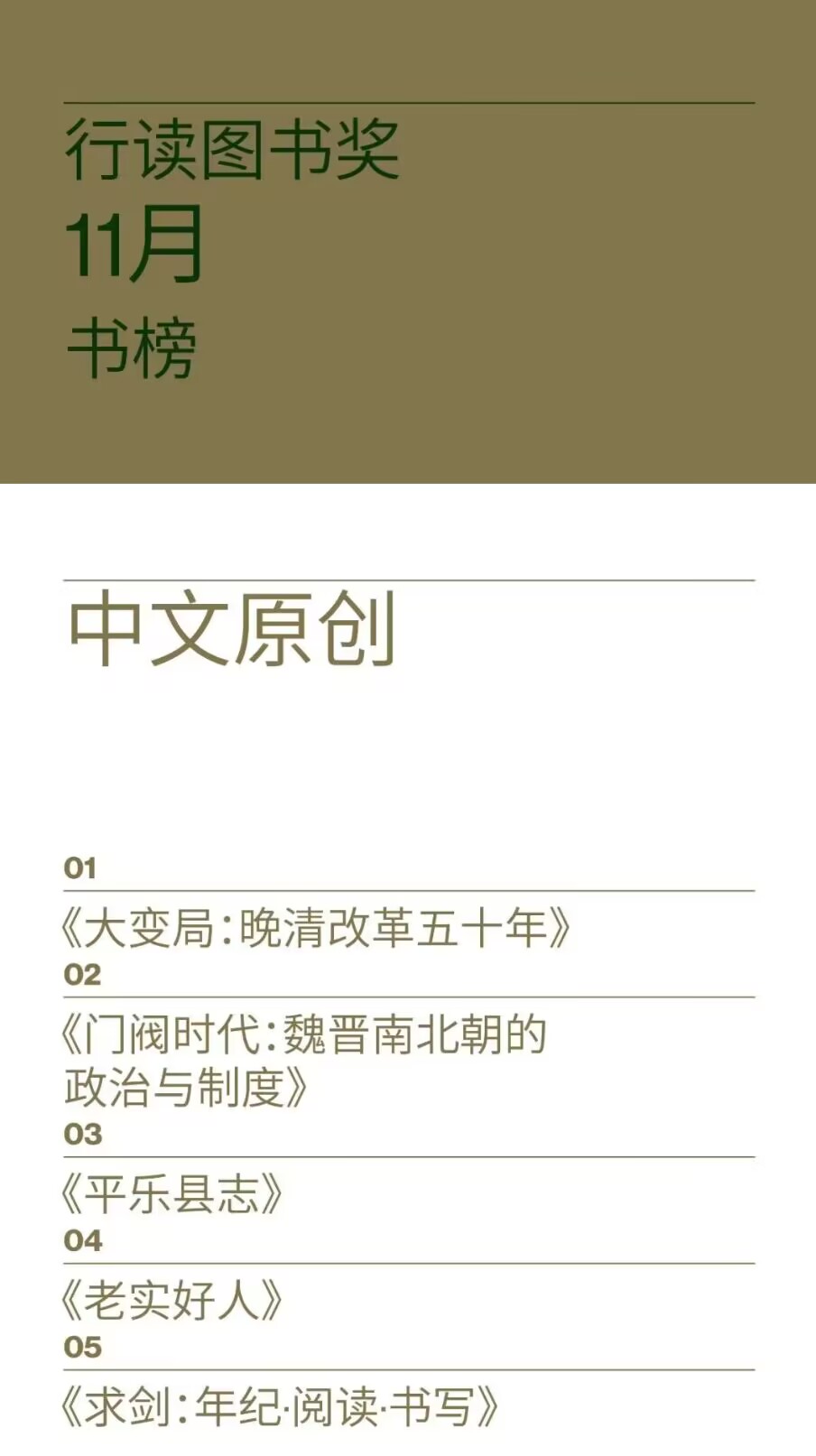 这10本好书,温暖你的漫漫冬夜|第三届行读图书奖11月书榜