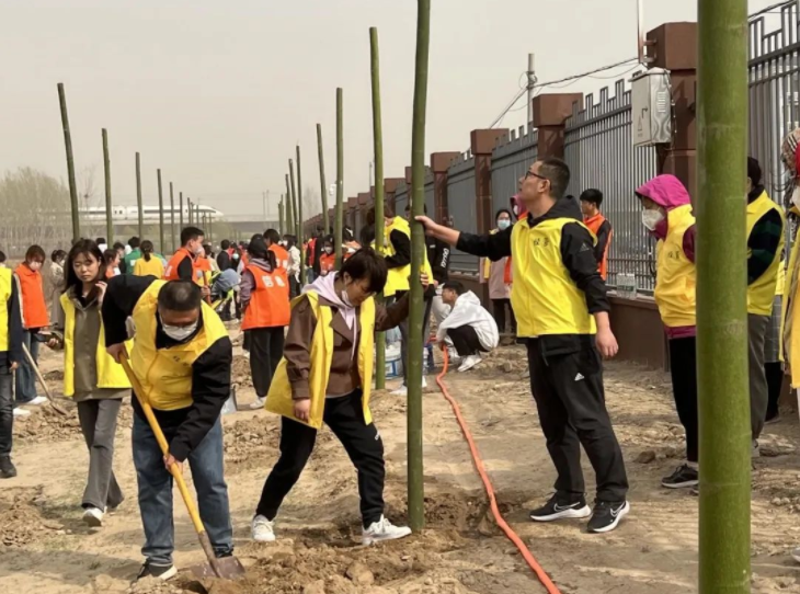 最是一年春好处,植树添绿正当时。3月11日上午,院长张召哲、副书记王盼红带队全体党员教师乘坐大巴前往开封。与开封师生集合之后,大家共同前往指定地点开展植树活动。活动中,经过合理分工分组,师生三五成群通力合作、共同植树。挥锹铲土、栽植树苗、填土踩实、提桶浇水……环环相扣的严谨规范工序,有效保证了树苗的成活率。经过1小时左右辛勤劳动,一棵棵树苗整齐挺拔,一片片空地孕育希望,校园再添新绿、生机盎然。