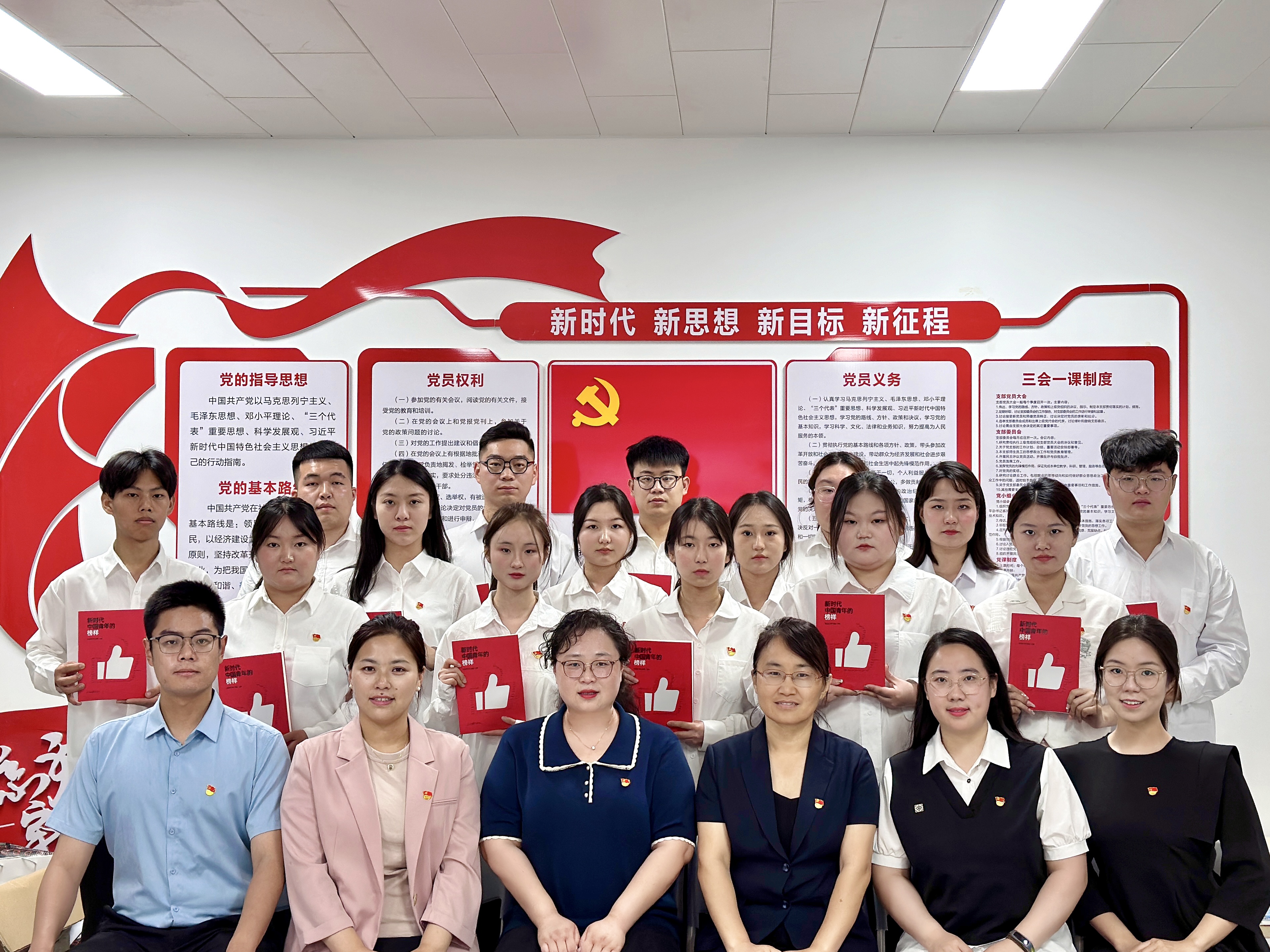 随后,入党介绍人为18名同志佩戴党员徽章、赠送书籍并合影留念。
